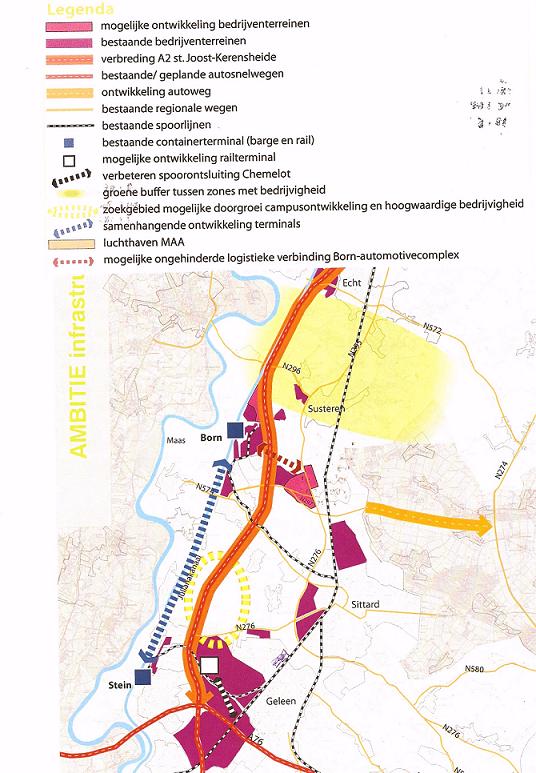Onderstaand kaartje geeft de plannen uit het tussenrapport in grote lijne weer. In het ovale gele gebied ten noorden van DSM wordt gedacht aan een researchcampus en hoogwaardige bedrijvigheid (de ondergrondse energieopslag).